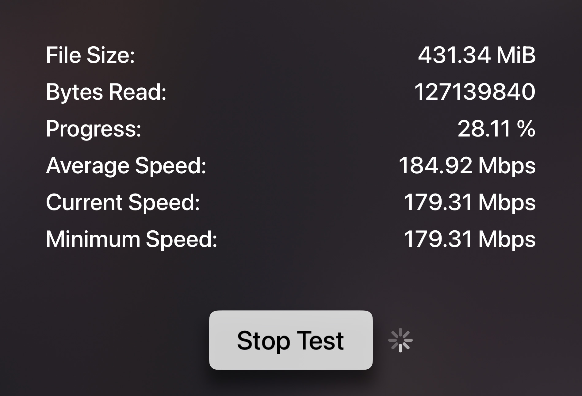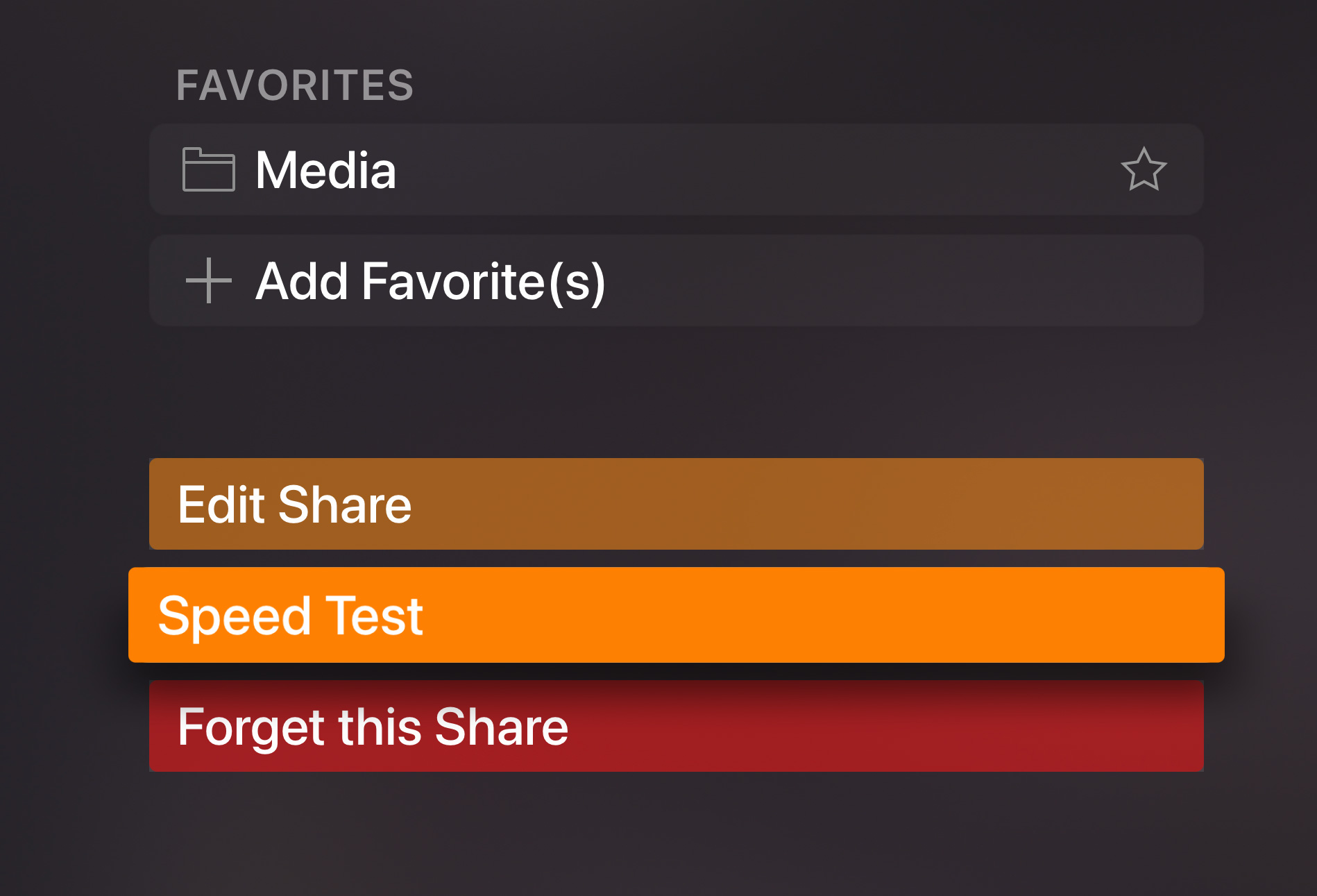 Infuse comprend une fonction de test de vitesse intégrée qui vous permet de tester les vitesses de transfert réelles de à partir de l'endroit où vos vidéos sont stockées.
